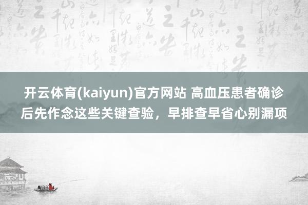 开云体育(kaiyun)官方网站 高血压患者确诊后先作念这些关键查验,早排查早省心别漏项