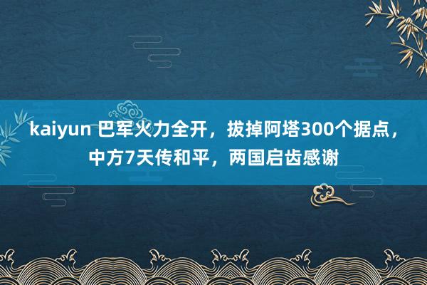 kaiyun 巴军火力全开,拔掉阿塔300个据点,中方7天传和平,两国启齿感谢
