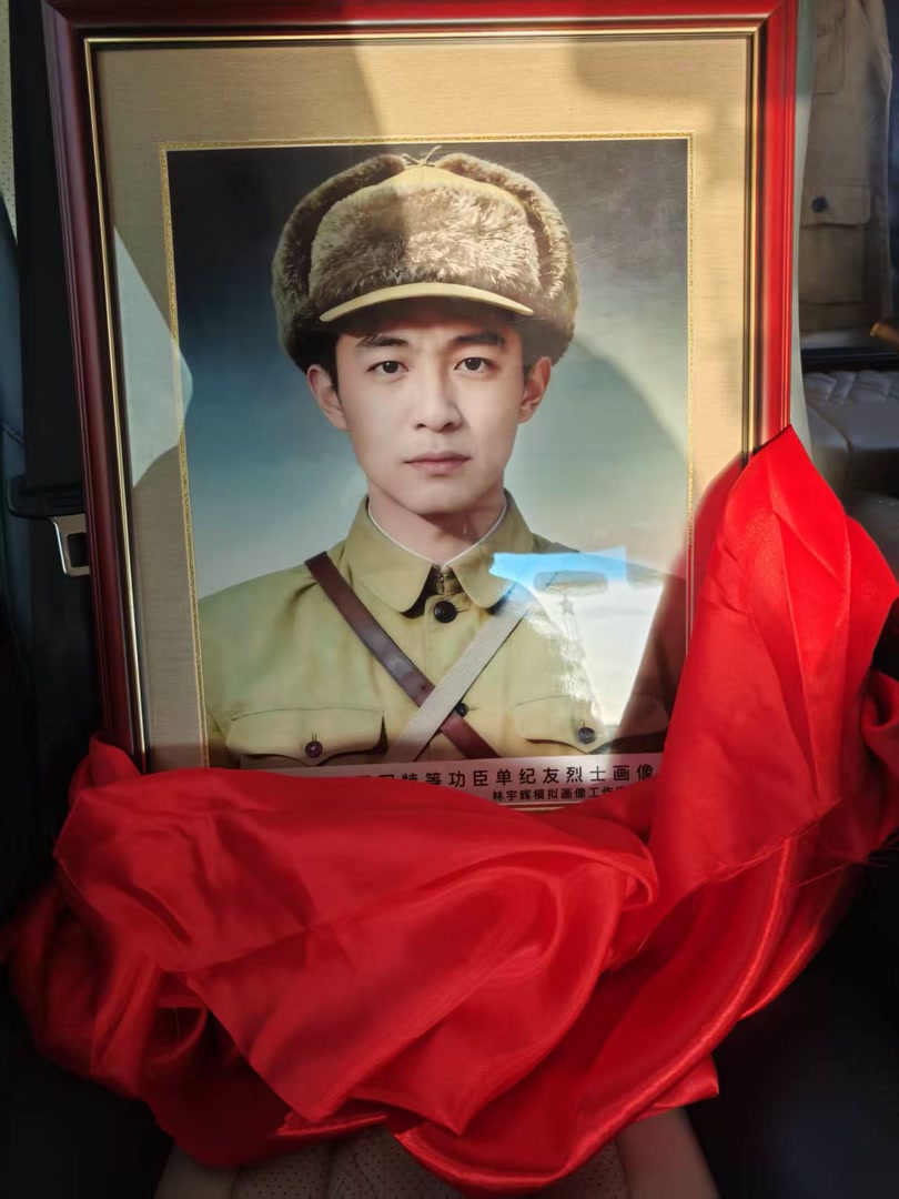 就在记者采访确当寰宇午,林宇辉和志愿者整个,从济南赶赴潍坊高密,为一位97岁的老东谈主奉上其弟弟——罕见元勋单纪友义士年青时的画像。