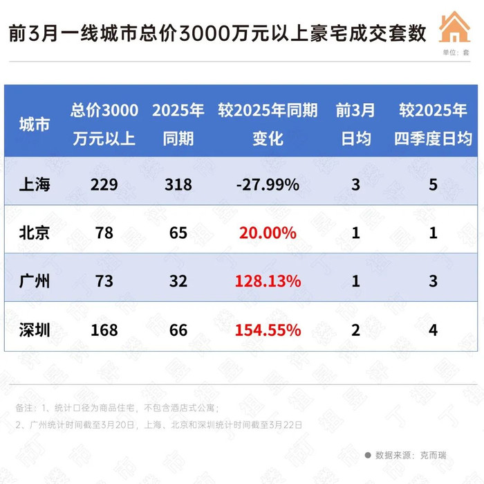 克而瑞数据夸耀,放置3月22日,四大一线城市总价1000万元以上商品住宅共成交3044套,较2025年同时减少37%傍边。