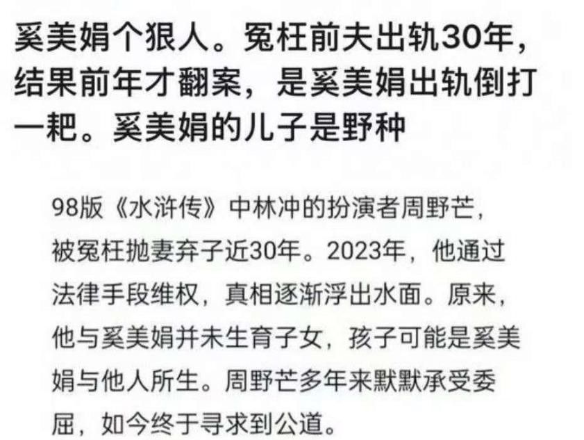 判决晓示明确指出:奚好意思娟所育之子与周野芒并无生物学亲子关系,婚内出轨一方并非周野芒,而是奚好意思娟本东说念主。