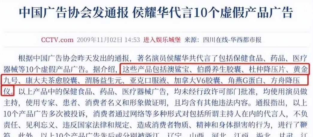 为牟取收益,侯耀华险些有问必答:保健品、处方药、医疗器械……以致连所谓“十大传世名画”保藏品都纳入代言清单,遭央视点名月旦涉嫌严重诞妄宣传。