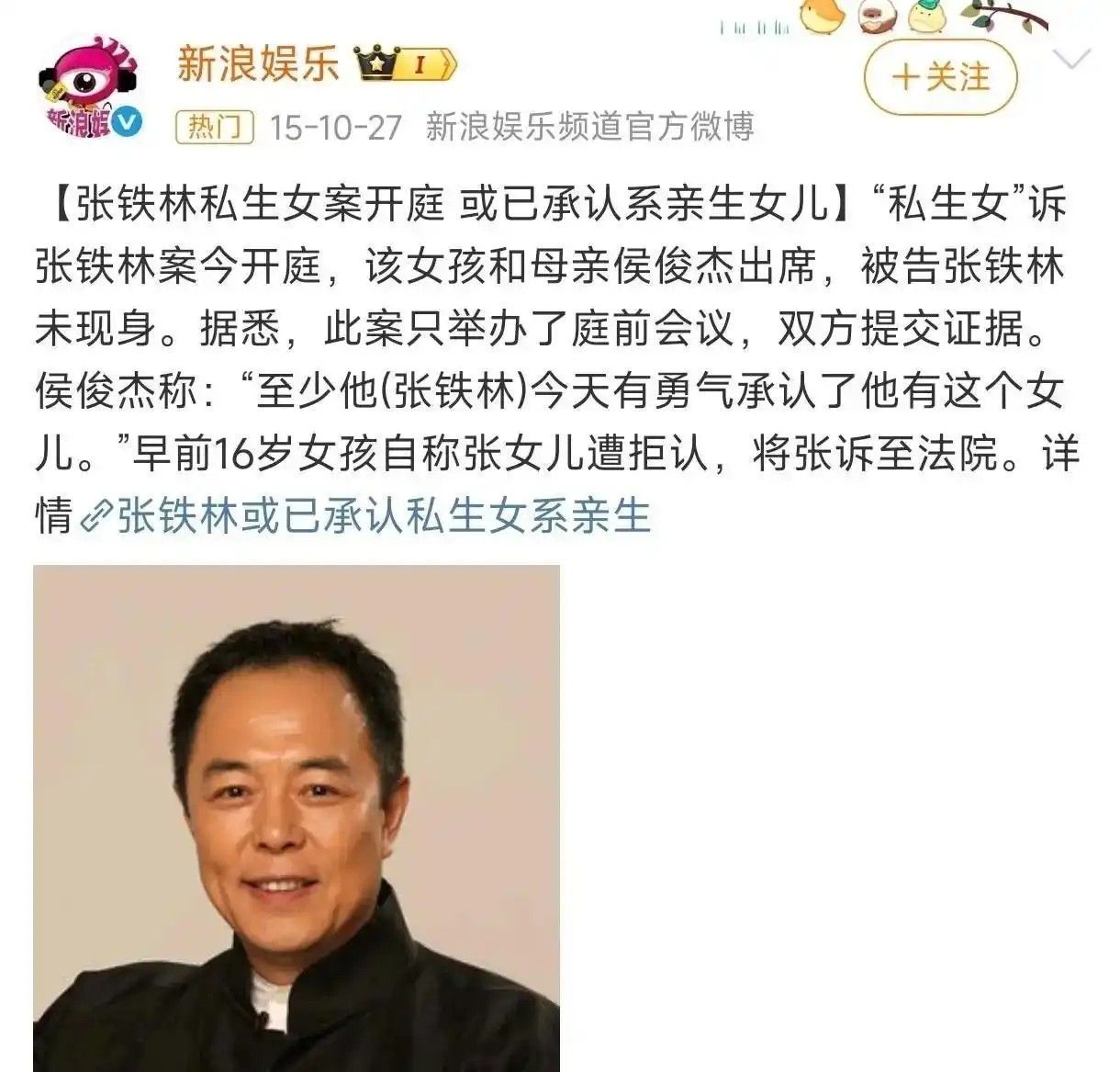 若论荧幕形象与现实行动的雄壮落差,张铁林亦属典型代表。