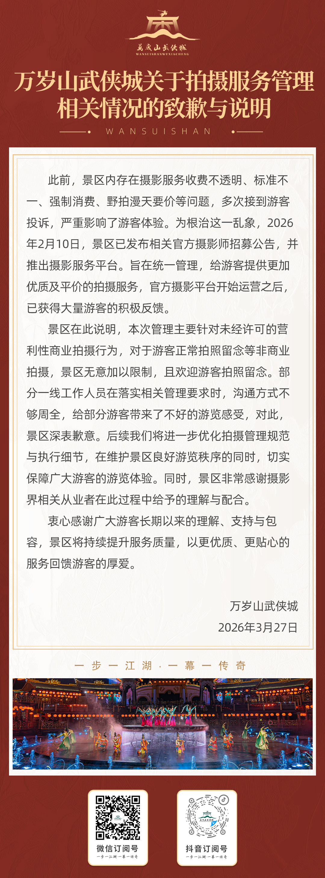 万岁山武侠城3月27日发布对于拍摄业绩科罚干系情况的致歉与诠释:kaiyun