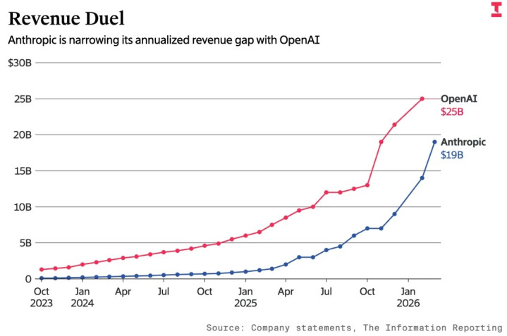 OpenAI与Anthropic事迹走势(图源:The Information)