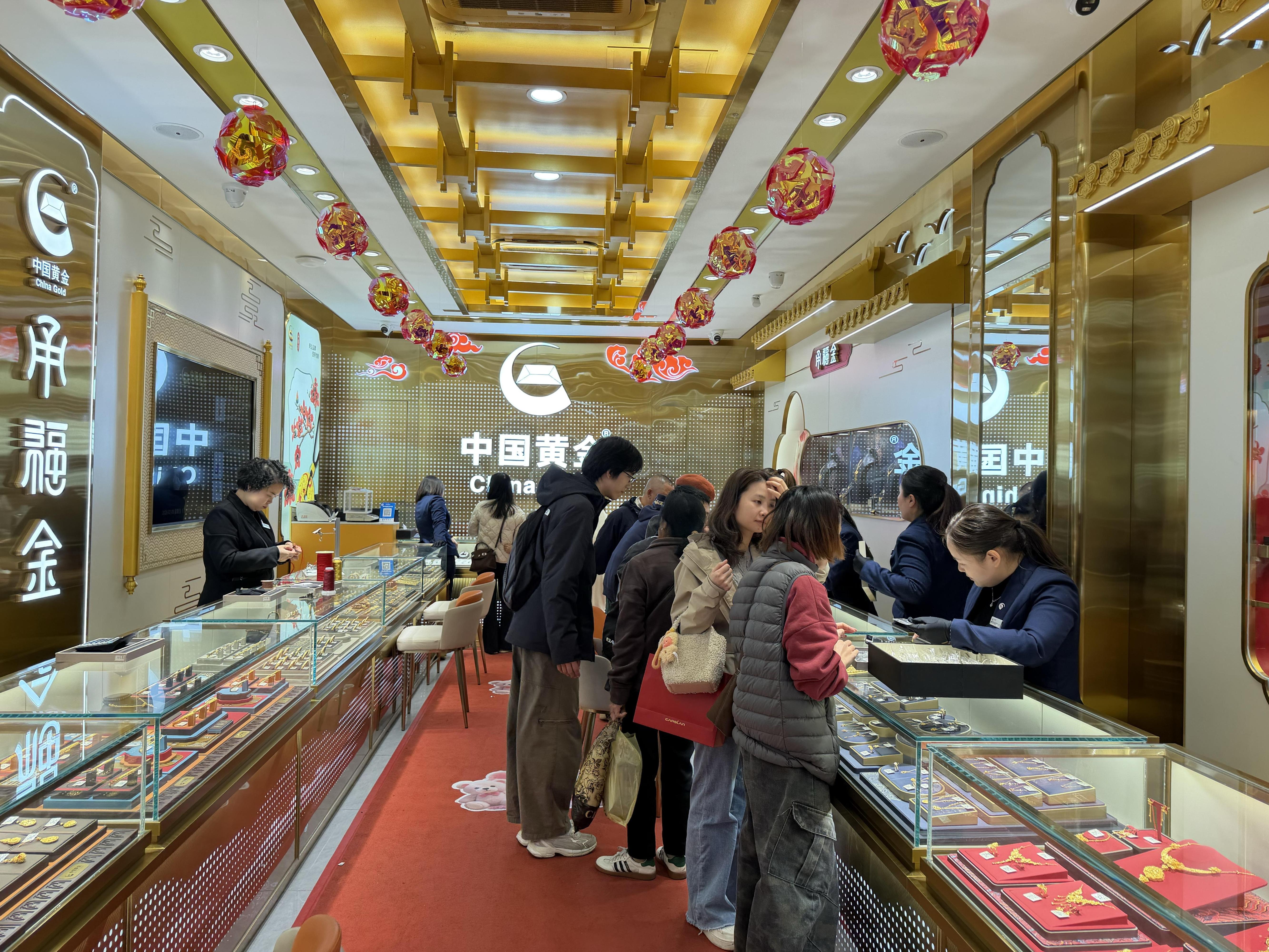 2月8日,位于北京路的金店客流实况。