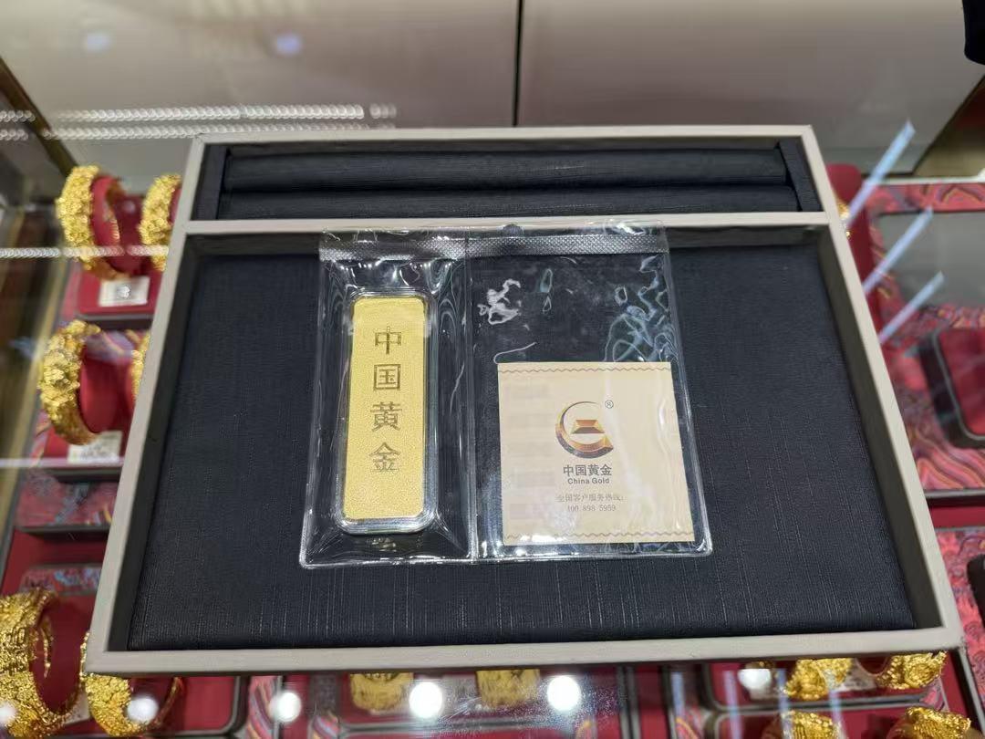 北京路某金店柜台售卖的100g投资金条。