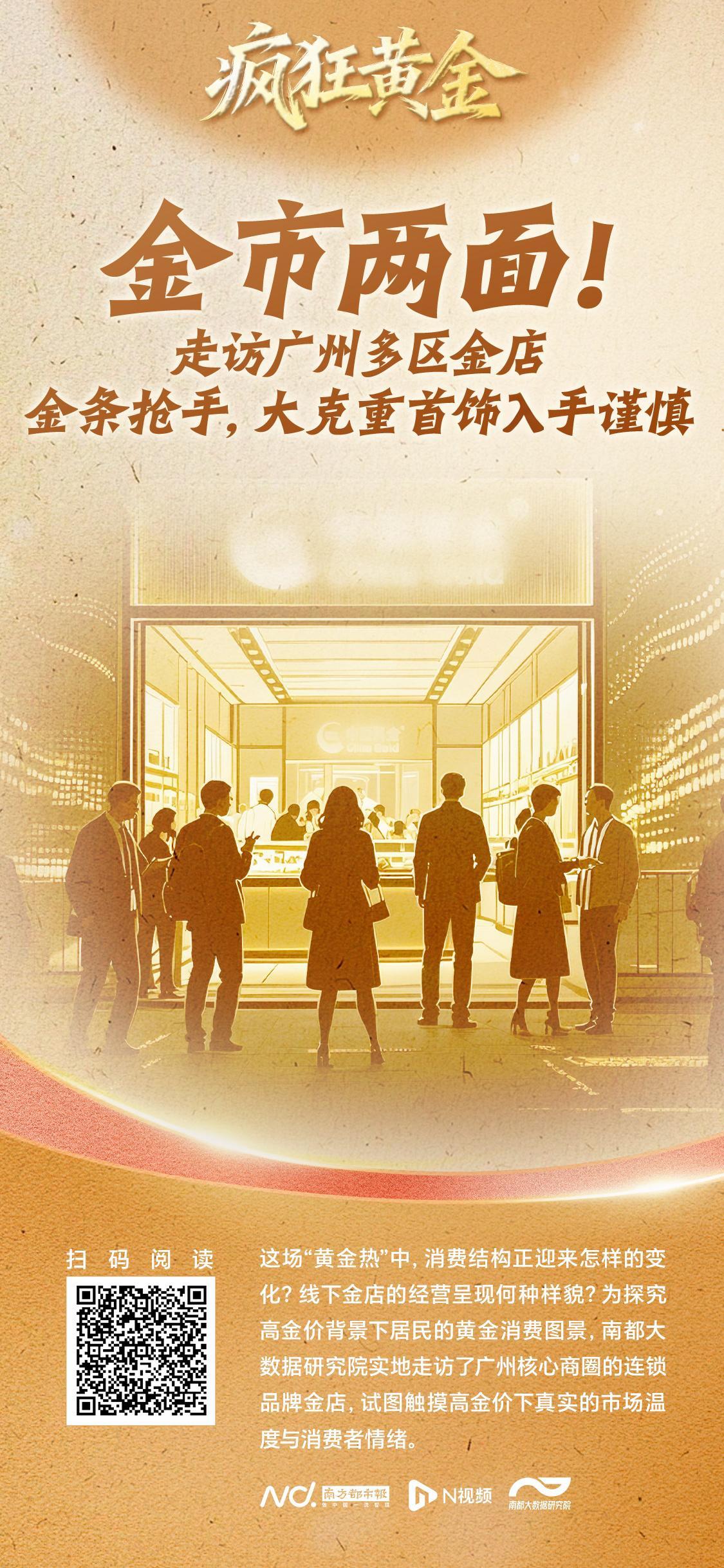 夙昔一年,国外金价创下1979年以来的年度最大涨幅,带动国内金价“狂飙”。这场“黄金热”中,猝然结构正迎来何如的变化?线下金店的谋略呈现何种面貌?为探究高金价配景下住户的黄金猝然图景,南都大数据商酌院实地拜谒了广州中枢商圈的连锁品牌金店,与一线从业者及猝然者对话,勾画消畏惧态、梳理购买偏好、研判市场趋势,试图触摸高金价下真确的市场温度与猝然者激情。